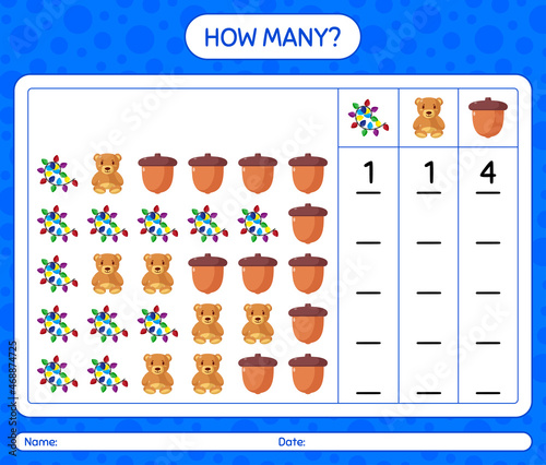 How many counting game with christmas icon. worksheet for preschool kids, kids activity sheet