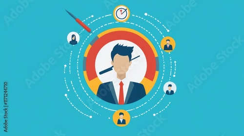 HRM or Human Resource Management, manager icon which is among staff icons for human development recruitment leadership and customer target, resume, interview. generate by AI