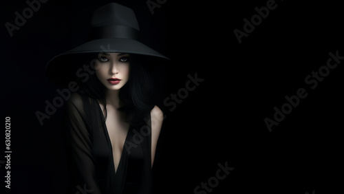 Hübsche Asiatische Frau Gesicht mit Hut in schwarz weiß Porträt, ai generativ