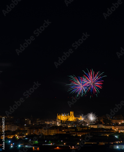 Huesca (aragon spain) night landscape with fireworks