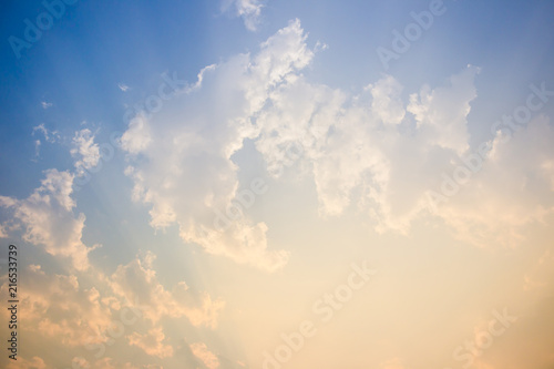 Huge clouds group in the sky with sunlight pass throug from clouds.