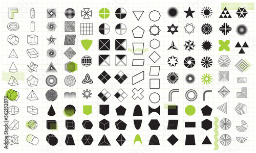 Huge collection of trendy geometric halftone vector graphic elements for education literature, magazine, billboard, advertisement, posters, and leaflets. Memphis, retro elements