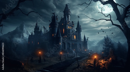 Huge Halloween castle at night
