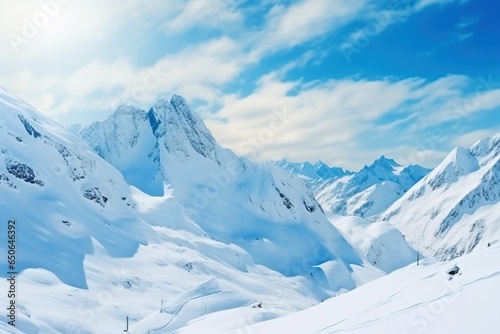 Huge snow mountain range with blue sky ski resort background