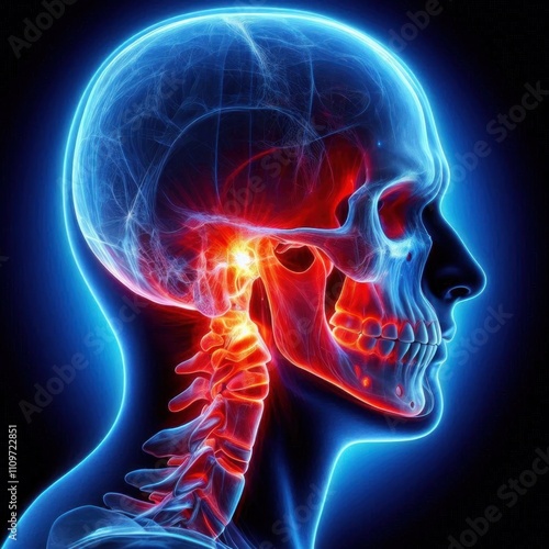 Human Anatomy Head Neck Pain X Ray Medical Healthcare Illustration 3D Bone Skull Spine Joint Red