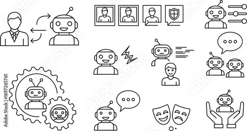 Human and robot interaction icons representing communication, collaboration, and AI integration.