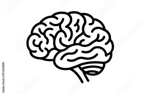 Human Brain Icon, Neuroscience, Mind, Intelligence, Cognitive Science, Mental Health, Psychology, Memory, Learning, Brainstorming, Education, Anatomy, Black Line Vector Illustration