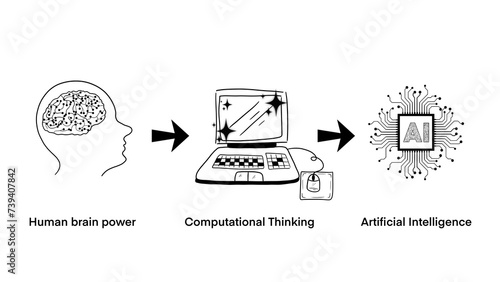 human brain power, Development of thinking power from the human brain to computer, further development to artificial intelligence, Education technology concept, technology transform to replace human