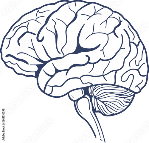 Human brain vector hand drawn. Vector anatomy illustration of the human brain. Brain vector art with white background.