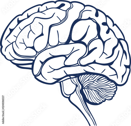 Human brain vector hand drawn. Vector anatomy illustration of the human brain. Brain vector art with white background.