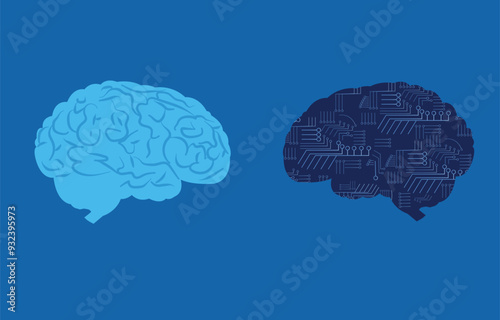 human brain versus brain with circuits, transition from human thought to artificial intelligence, artificial intelligence