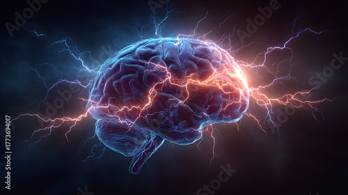 Human brain with electrical activity
