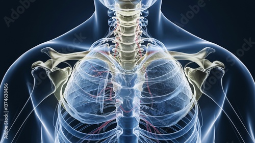 Human Cross-Section glowing neon, Upper Body Anatomy, Skeletal and Respiratory Systems