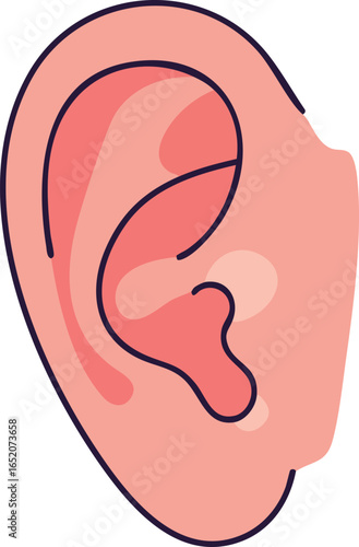 Human ear anatomy vector illustration showing outer ear structure in pink tones