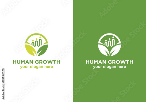 human growth logo icon. people connected with business logo vector with green leaf combination for growth