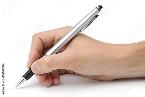 Human Hand Holding Pen on White Background – High-Resolution Minimalist Writing Concept
