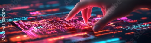 Human Hand Interacting with Glowing Digital Interface