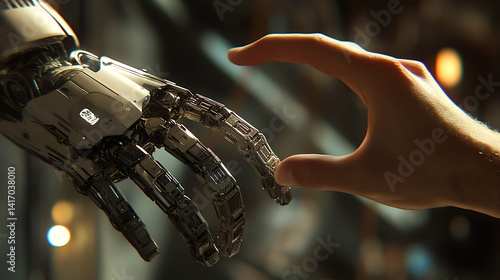 Human Hand Reaching Towards a Robotic Hand A Symbol of Technological Advancement and Human-AI