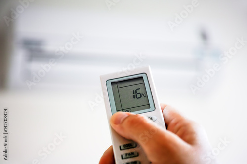 Human hand using remote control of air conditioner