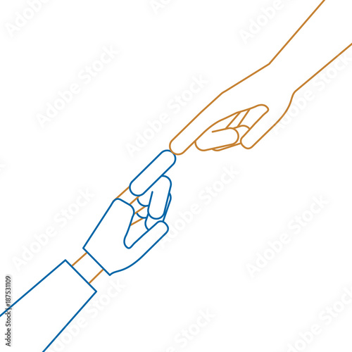 human hand with robot hand vector illustration design