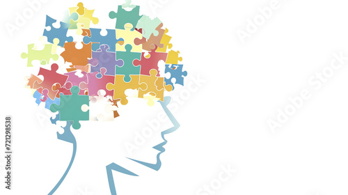 Human head profile and jigsaw puzzle, cognitive psychology or psychotherapy concept, mental health, brain problem, personality disorder, vector line design,
