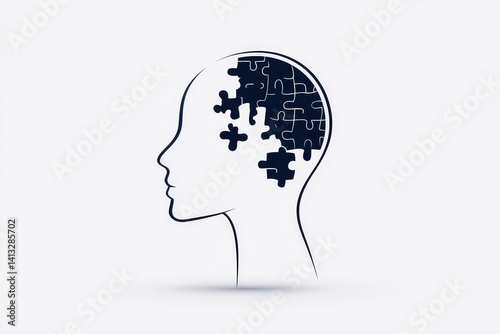 Human Head Profile Puzzle Pieces - Symbolizing cognition, problem-solving, mental health, memory, and the complexities of the human mind. A simple yet evocative