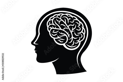 Human head silhouette with brain Vector with Mind Intelligence and Creativity Illustration