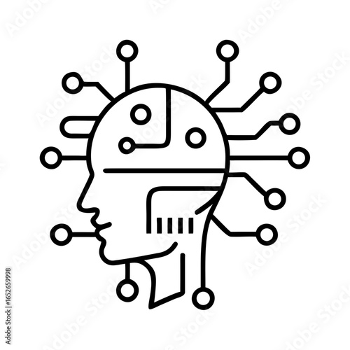 Human head with circuit board connections inside, representing artificial intelligence and modern technology concept. Vector icon for website, app interface