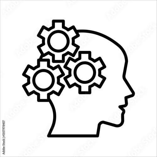 Human head with gear Icon Symbol isolated white background. vector illustration. color editable.