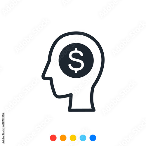 Human head with Stack of Coin, The concept of Financial business and People, icon, Vector.