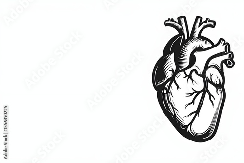 human heart illustration with copy space, anatomical heart drawing on white background, medical heart sketch with text area