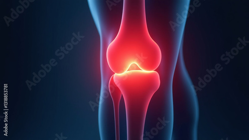 human knee joint illustrated glowing red color scheme dividing joint distinct
