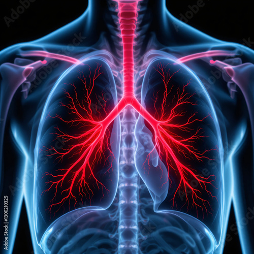 Human Lung Anatomy with Bronchial Tree Displayed in Blue and Red