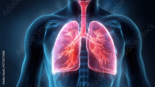 Human lungs anatomy illustration, showing respiratory system and trachea
