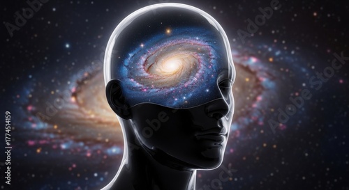 Human mind contemplating the vastness of the cosmos, symbolizing knowledge and imagination.