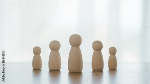 Human Resource Management or Staff Recruitment Concept of leading business. choice of an employee leader from the crowd. wood block people.