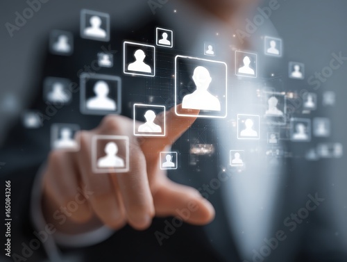 Human resource technology, HR recruitment and team management, Human resource manager reviewing online CVs to select perfect candidate for employment using digital technology and networking tools