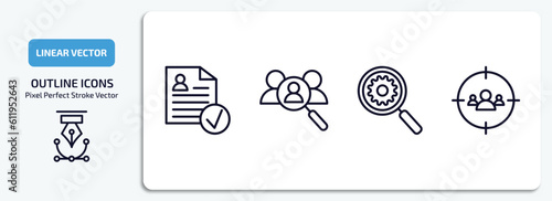 human resources outline icons set. human resources thin line icons pack included approved, recruitment, due diligence, target audience vector.