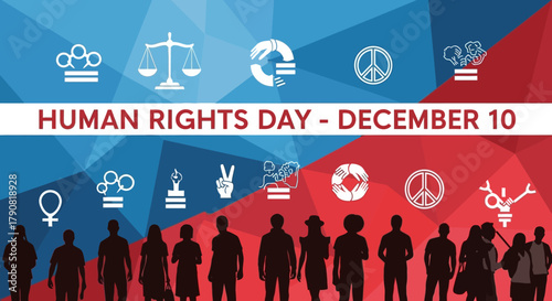 Human Rights Day December 10 Celebration with Symbols and People Silhouettes.