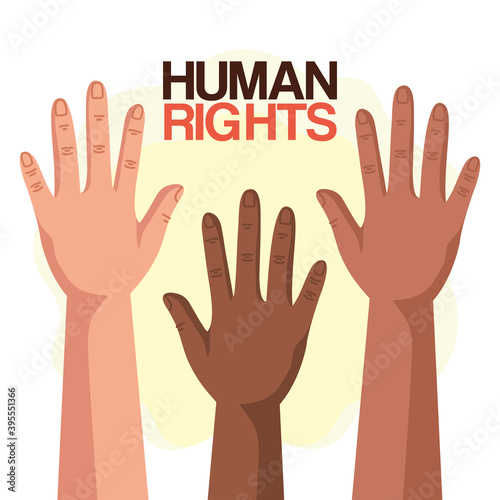 Human rights with diversity hands up design, Manifestation protest and demonstration theme Vector illustration