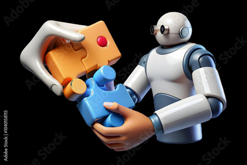 Human Robot Puzzle Assembly Collaboration Digital Art Soft Bokeh Effect Symbolizing Problem Solving with Ample Copy Space for Stock Photo Concept
