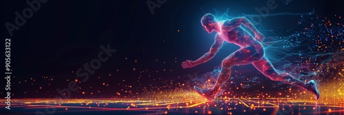Human Runner Athlete with Digital Wireframe and Neon Light Background, a Fusion of Sport and Technology