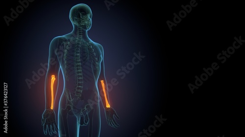 Human skeleton anatomy Ulna Bone 3D Rendering For Medical Concept