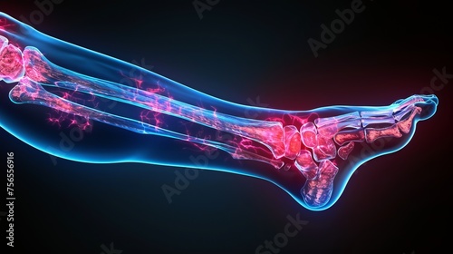 Human Skeleton Foot Bones with Red Light. 3D