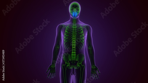 Human Skeleton Skull Maxilla Bone Anatomy For Medical Concept 3D Illustration