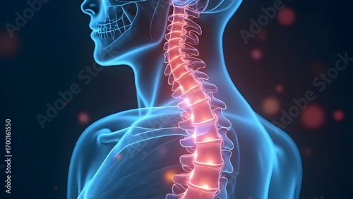 Human spine bathed in ethereal abstract illumination