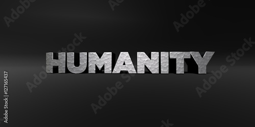 HUMANITY - hammered metal finish text on black studio - 3D rendered royalty free stock photo. This image can be used for an online website banner ad or a print postcard.