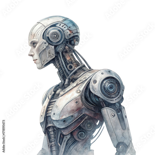 Humanoid robot advanced technology watercolor isolated on a transparent background futuristic