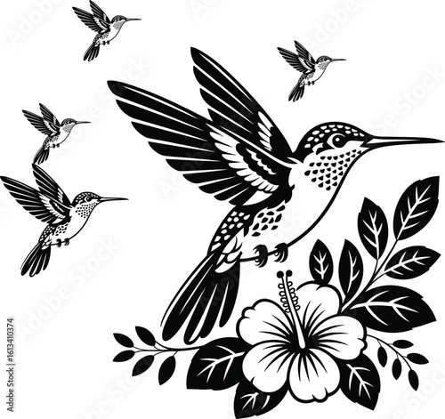 Hummingbird DXF EPS Floral Hummingbird EPS, Hummingbird Clipart, Hummingbird Vector Image, Bird Silhouette, Flower EPS,