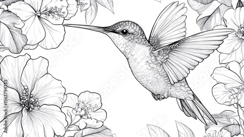 Hummingbird in Blooming Flowers